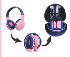 ユニークなデザインのヘッドバンド部が特徴のおしゃれなキッズ用ヘッドセットです。無線タイプですが、着脱するケーブル付属で、用途によって使い分けます。また、折りたたむことができ、専用のキャリーケースに入れて持ち運べます。