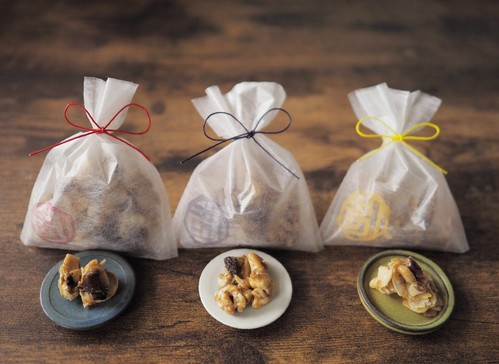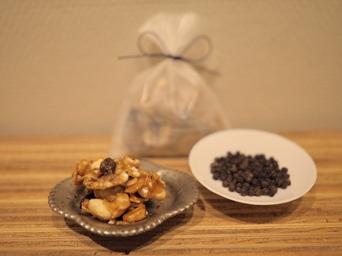大阪の中崎町という知る人ぞ知るレトロでおしゃれなカフェの激戦区にあるギャラリーカフェMATSURI。コーヒーのお茶請けにと、スパイスを効かせたナッツを出していたらこれが大好評の一品となりました。ナツメグ・黒コショウの香りを効かせてキャラメリゼしたナッツ。コーヒー紅茶にも合いますし、お酒との相性もバツグン。お値段もお手頃で、ギフトバックに入れての販売もされています。大人のためのぜいたくナッツ。クールなあの人にいかが?
