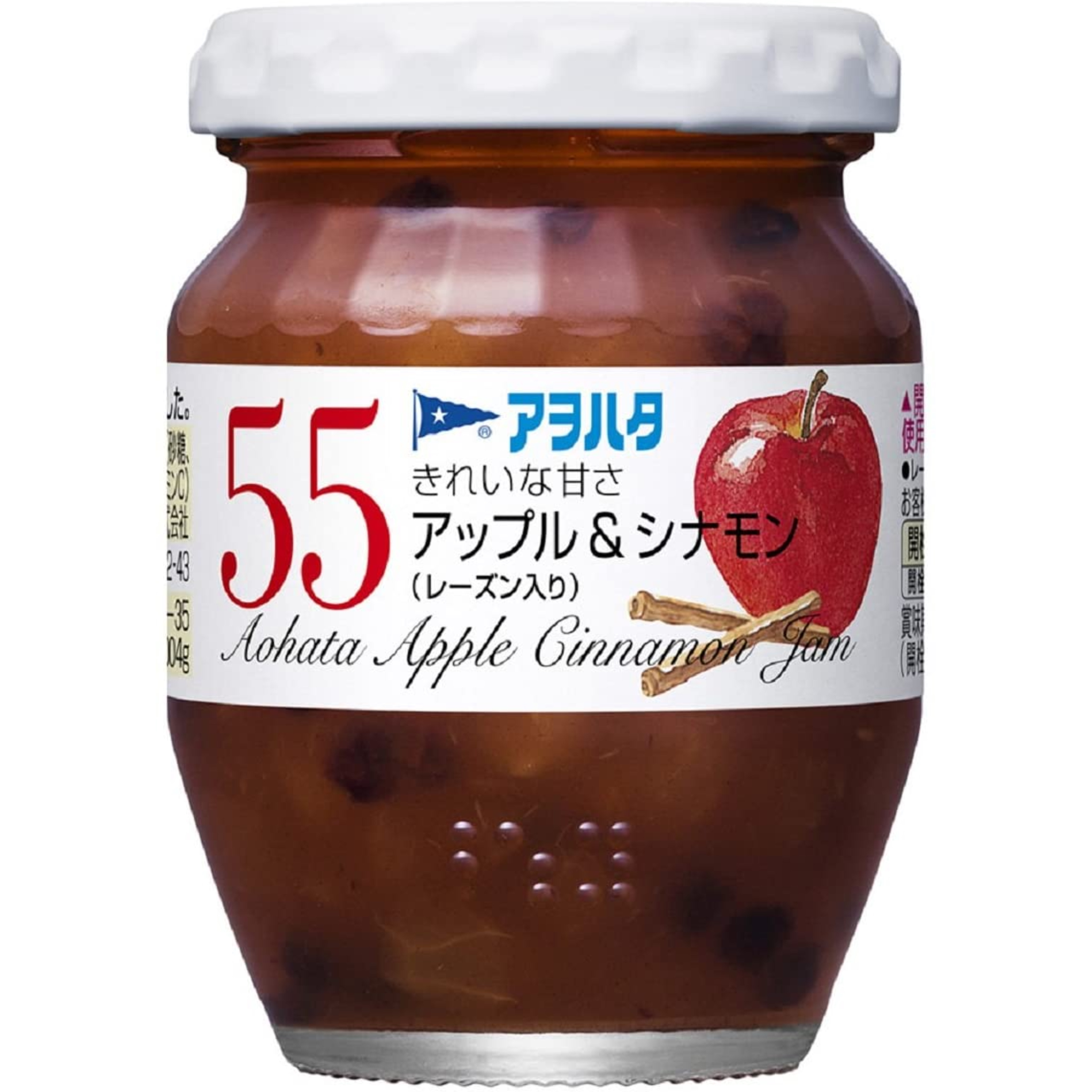 レーズン入りのアップル、シナモン味のジャムです。1970年から発売され、2016年にアヲハタ 55ジャムとしてさらに進化しました。ファインフルーティー製法の導入により、もっとフルーティーさを感じさせるジャムへと変革。シナモンがりんごとマッチしていて、クセになるおいしさです。