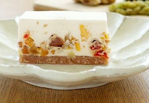 | 原材料 | クリームチーズ、生クリーム、ドライマンゴー、ドライアプリコット、ドライいちじく、クコの実、グリーンレーズン、グラハムクッキー、バター、ゼラチン、ゲランド塩、レモン果汁 |