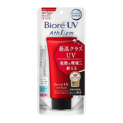 にきびになりにくい処方で女子に嬉しい!ビオレUV アスリズム スキンプロテクトエッセンス!過酷な環境にも耐えるUVエッセンスで高温多湿環境で落ちにくさを確認。汗・擦れに強く落ちにくいタフブーストTech採用。また肌の乾燥を防ぐヒアルロン酸・ローヤルゼリーエキス・BG配合で、肌になじんだ後にするするの肌感触に変わるのが特徴です。
