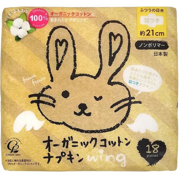 オーガニックコットンで肌あたりの良さを追求した、コットンラボ オーガニックコットン ナプキン!シンプルなノンポリマー羽つきタイプです。よくあるナプキンの形とは違い、きっちりと長方形で厚みがあります。