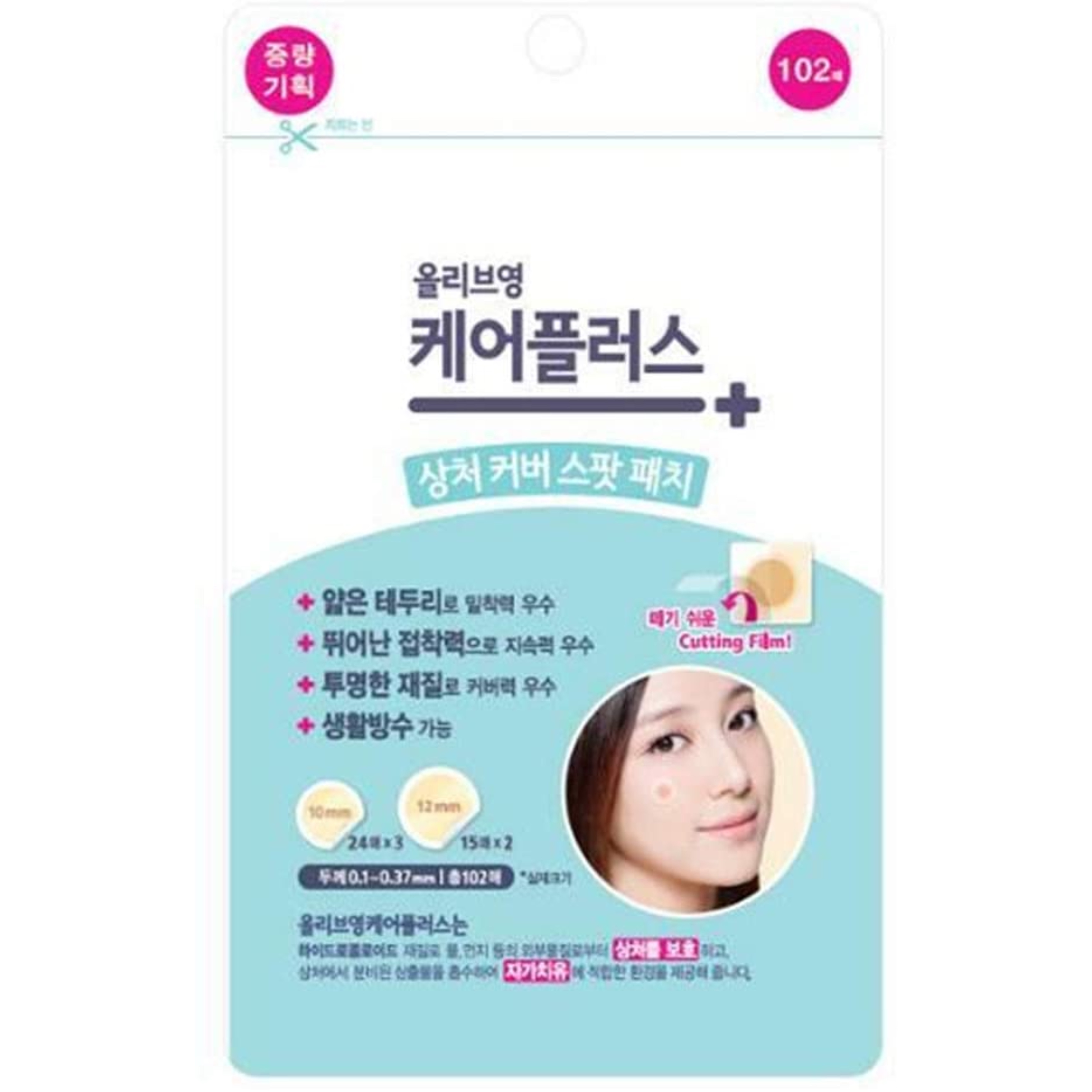 | メーカー | オリーブヤング | 種類 | ハイドロコロイド素材 | 内容量 | 102枚 | サイズ | 10mm、12mm | 安さ | △(820円) | 付属商品の有無 | ×無 | 天然由来成分の有無 | ×無 | その他機能の有無 | ◯有(防水機能) |
