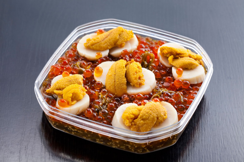 | 量 | 350g | 賞味期限 | 製造日から90日、解凍後5日 | 配送 | 7〜10日に出荷 | メイン食材 | うに、ホタテ、いくら | 予算 | ○3 900円 | 産地 | 三陸地方 |