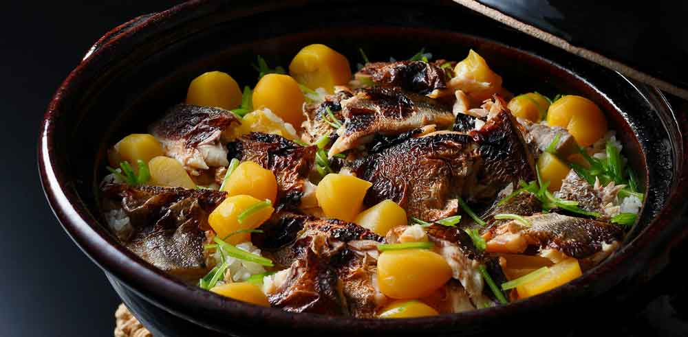 脂がのったかますと秋に旬の栗を合わせた季節限定の炊き込みご飯。自宅で簡単に作れて、秋香る本格料亭の味を楽しむことができます。炊き込みご飯に合う丹後米もセットでついているので、家にお米がなくても大丈夫です。