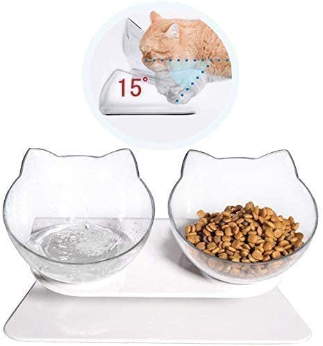 猫の形が可愛い透明のフードボウルセット。角度が15度で ...