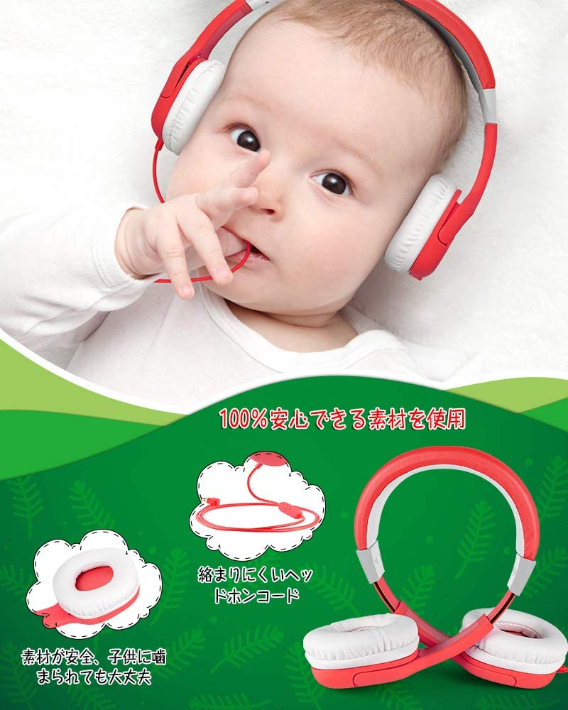 子供用有線ヘッドセットです。とにかく軽い!カラーバリエーションとして、クリスマスレッドとイエローブルーの2タイプが発売されていますが、圧倒的に赤が可愛いと人気です。最大音量の調節は、85dB/93dBの2段階を選ぶことができます。柔らかいイヤーパッドや、絡みにくいフラットなオーディオケーブルには、子供に安心な素材が使われているため、万が一赤ちゃんがケーブルをかじってしまっても大丈夫です。