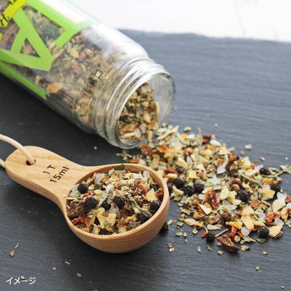 このスパイスが素晴らしいのは、国産のオーガニック食材を使った、「和風のハーブソルト」である、というところです。他の製品には見られない「ゆず」「ねぎ」など、和食材にピッタリの香りが詰めこまれています。海外のファンも多く、唐辛子&ゆずの、クセになるマッチングに魅せられた人たちに、広く愛されています。あっさり目の調理食材に合います。ボイル野菜やソテーした肉や魚に。