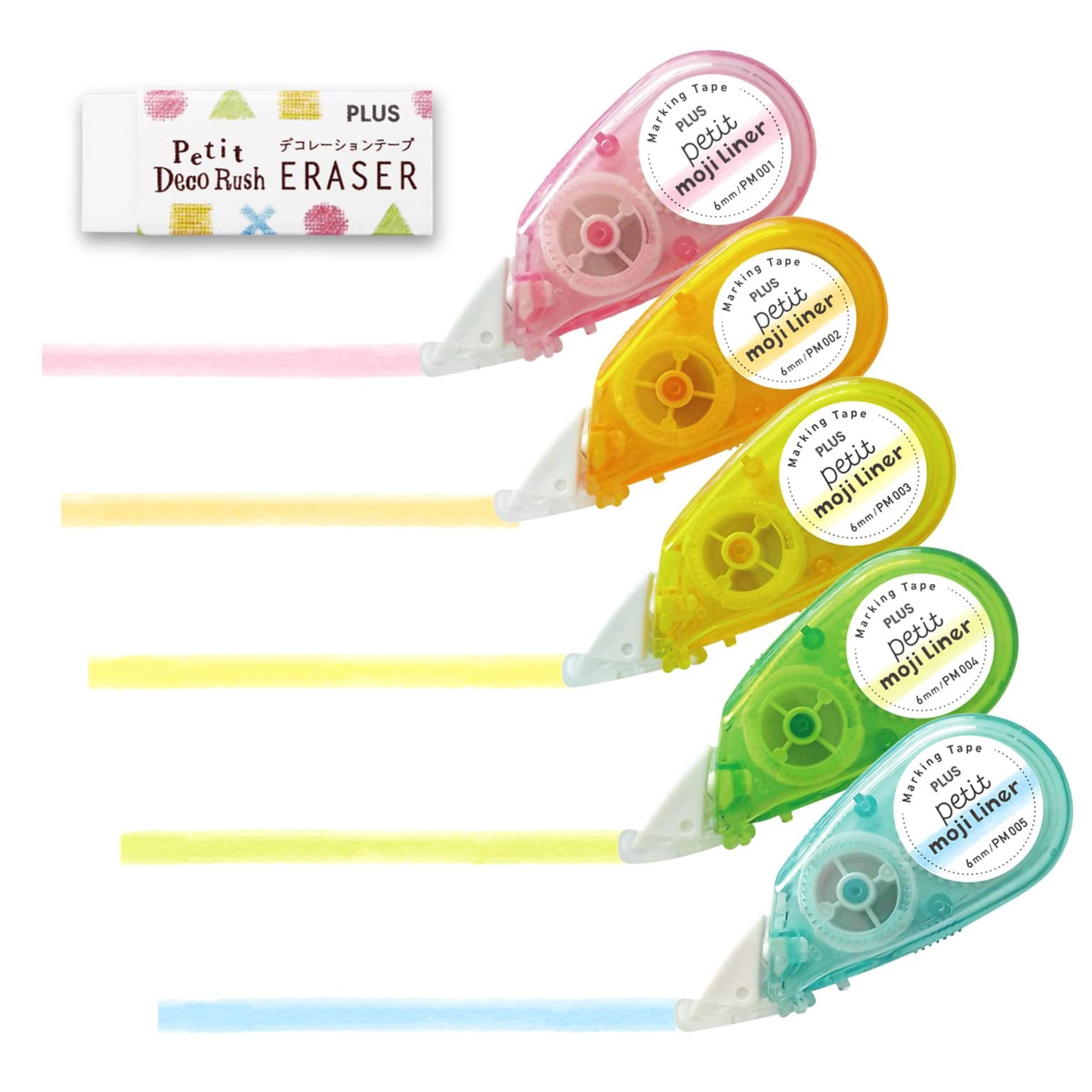第5位蛍光ペン マーキングテープ プチモジライナー ふんわりタッチ 全5色セット+消しゴム