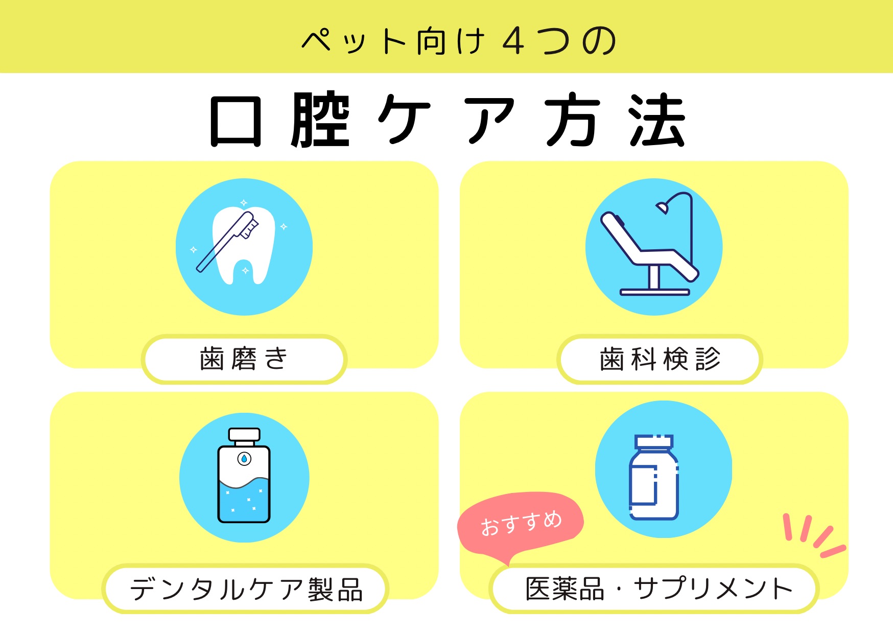 ペットの口腔ケア方法は4つあります。