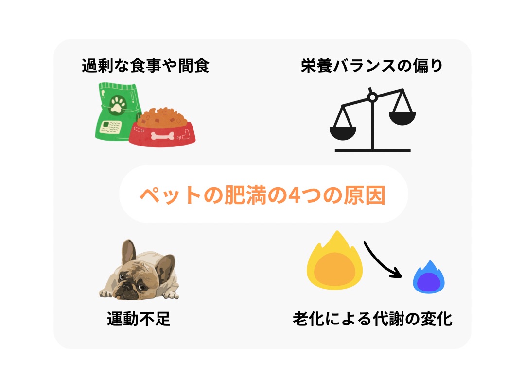 ペットの肥満の原因には以下のようなものが当てはまります。